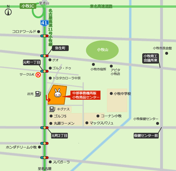 【小牧IC】で降りて、41号線を南へ約1.5km
