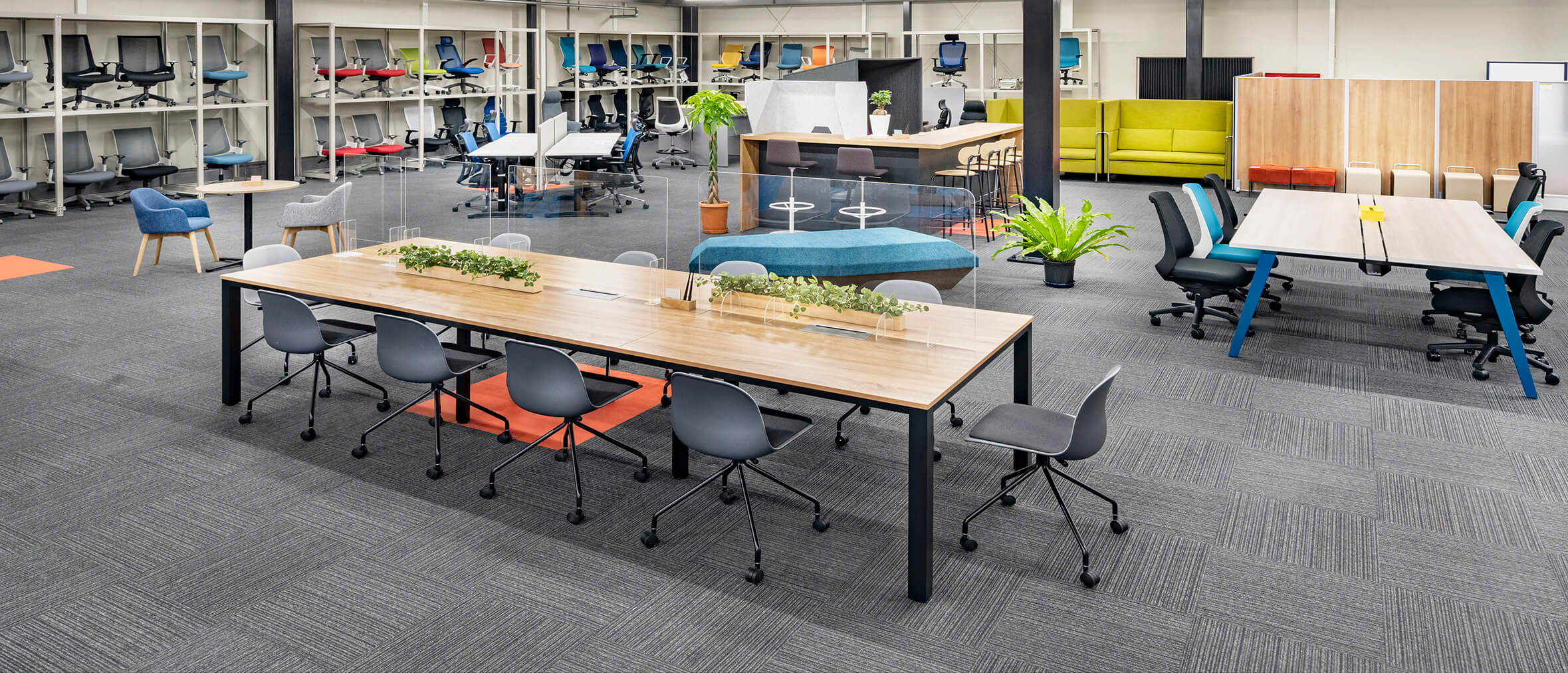デスク、ロッカー、カウンター、応接セットや、ご希望の多いハイパーテイション、ローパーテイションなどのオフィス家具から、ホワイトボード、シュレッダー、